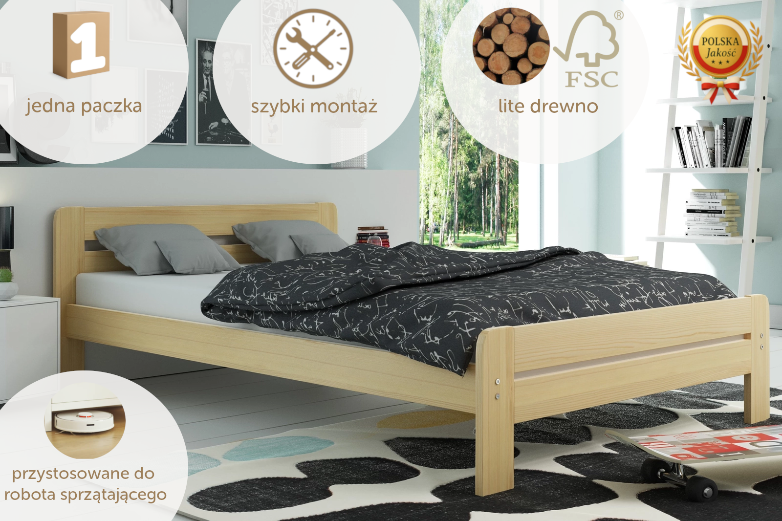 Postel Dallas byla vytvořena pro všechny, kteří ve svých interiérech oceňují minimalismus a eleganci. Nábytek zaujme svou skandinávskou jednoduchostí a lehkostí, která nepřehlušuje interiér. Kromě moderního designu však postel Dallas nabízí také bezpečnost a spokojenost při používání po mnoho let. Je vyroben z masivního dřeva, je stabilní a pevný. Dřevěný rám z prken poskytuje vynikající oporu páteři, usnadňuje zaujmutí správné polohy při spánku, zvyšuje pohodlí při odpočinku a zaručuje dobré zdraví po dlouhá léta. Barvy a laky, které používáme, jsou antialergické a zcela bezpečné. Mají všechna potřebná schválení a certifikáty, takže jsou vhodná i pro osoby s citlivou pokožkou náchylnou k podráždění. Postel Dallas splní vaše požadavky, pokud hledáte pohodlný kus nábytku s moderním designem, který vám bude sloužit mnoho let.