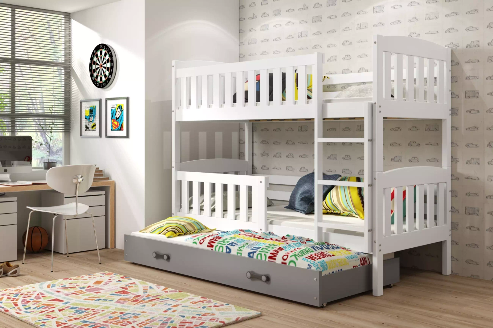 Bílá postel pro mladé je jednou z nejoblíbenějších voleb mezi rodiči a jejich dětmi. To není bezdůvodné. Bílá barva je velmi univerzální a umožňuje vytvářet různá aranžmá v jakémkoli stylu. Nemusíte se tedy obávat, že by vaše dítě po čase chtělo změnit barvu stěn nebo že by potřebovalo vyměnit například psací stůl nebo skříň. Bílá postel pro mladé je skvělým základem pro experimentování s dalšími barvami nábytku a stěn. Postel pro mladé se zásuvkou je designový doplněk, který plní několik funkcí. S jeho pomocí můžete vytvořit prostor pro spaní, ale také pro hraní. Zásuvka poslouží v případě potřeby jako další místo na spaní (po vložení vhodné matrace). Pokud naopak postel denně používají pouze dvě osoby, zásuvka poslouží jako úložný prostor pro ložní prádlo nebo hračky. Žebřík lze namontovat na pravou nebo levou stranu. Podívejte se na mnoho možností s naší bílou postelí pro mladé. Bílá barva rámu se skvěle hodí k jakémukoli aranžmá. Tvoří souvislý celek se zelenou, růžovou, šedou, modrou, hnědou - mohli bychom pokračovat dál a dál. Toho jsme dosáhli natřením povrchu dřeva zcela bezpečnou a antialergickou barvou, takže výrobek je bezpečný i pro děti s citlivou pokožkou. Neutrální barevné schéma se hodí jak do chlapeckého, tak do dívčího pokoje, takže se můžete vyhnout nepříjemným diskusím se svými ratolestmi.