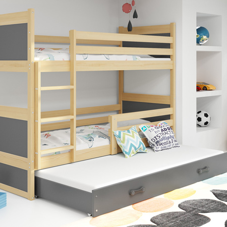 Postel pro tři osoby RICO 90X200 se zásuvkou, borovice/grafit