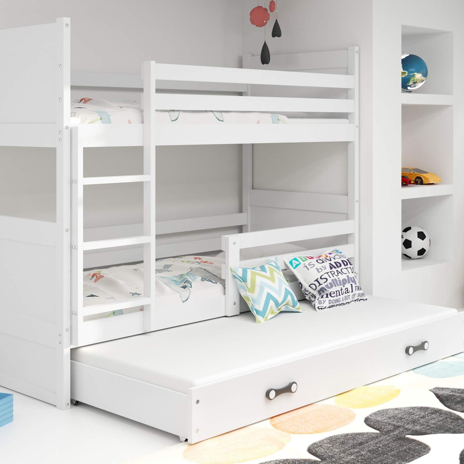 Klasická patrová postel pro 3 osoby je řešení, které se hodí do chlapeckých i dívčích pokojů. Vaše děti obývají jeden pokoj? V takovém případě je vynikající volbou varianta s příběhem v bílé barvě. Skvělý základ pro zdobení podle dětského vkusu.