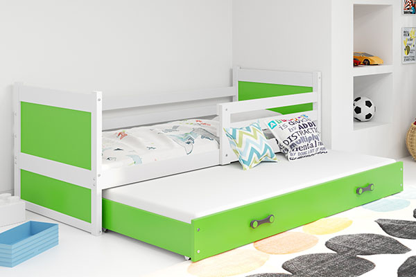 Rozkládací postel pro mládež RICO 90X200 se zásuvkou, bílá/zelená