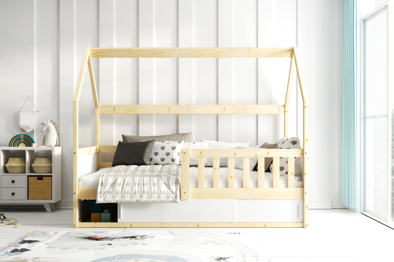 Model Smart 2 Cottage je nejen pohodlnou postelí, ale také jedinečným dekorativním prvkem, který do dětského pokoje vnese jedinečný půvab a praktičnost v jednom.