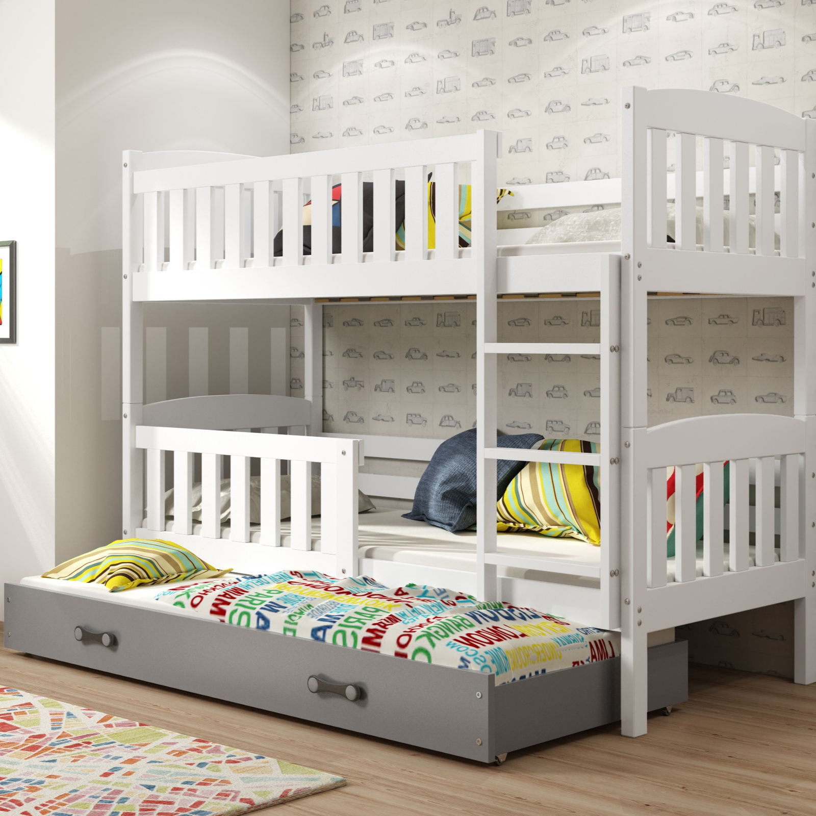 Třímístná postel pro mládež KUBUŚ 90X190 s matrací a zásuvkou, bílá/grafitová