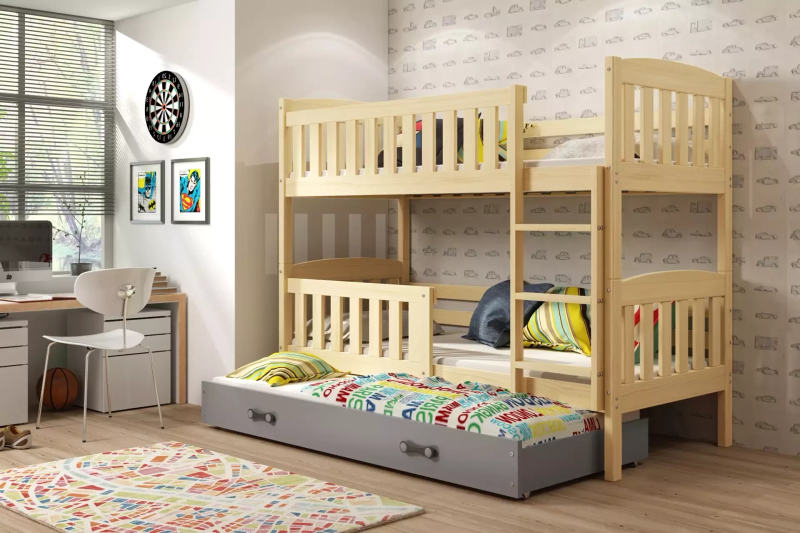 Patrová postel Kubuś pro 3 osoby byla vytvořena s ohledem na velké rodiny. Umožňuje vytvořit pokoj, ve kterém mohou spát až tři děti.
