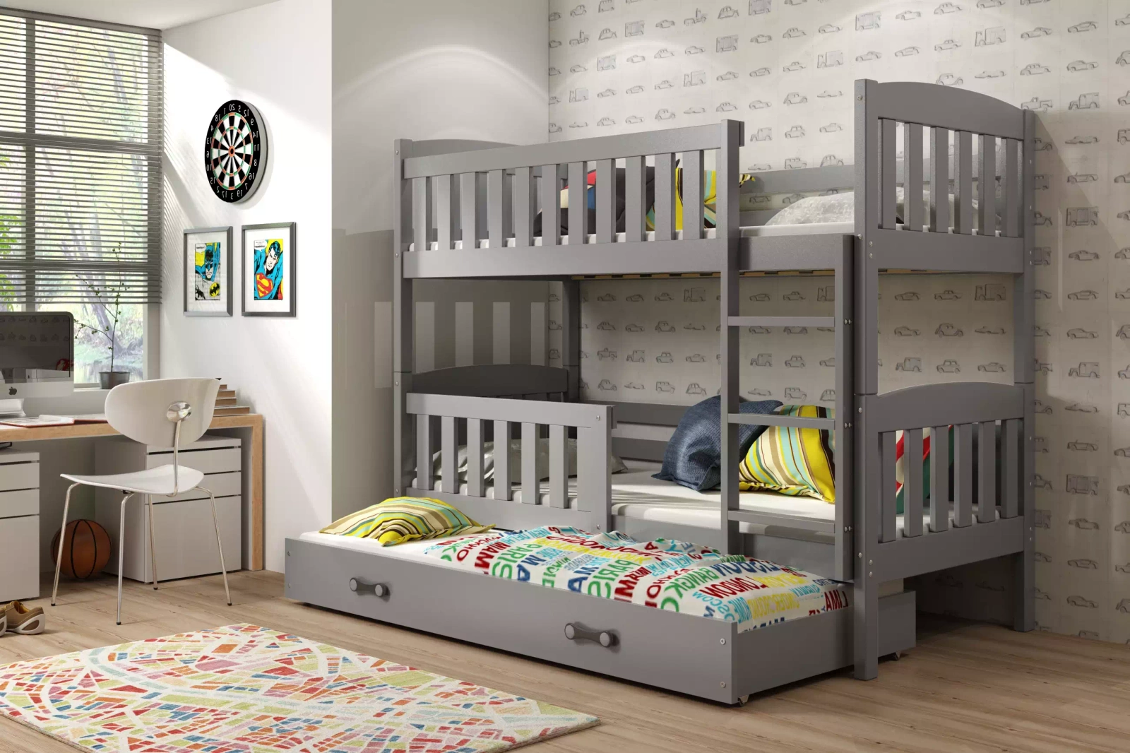 Třímístné lůžko pro mládež KUBUŚ 90X200 se zásuvkou, grafitová barva
