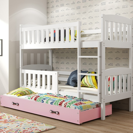 Trojlůžko pro mladé KUBUŚ 90X190 se zásuvkou, bílá/růžová