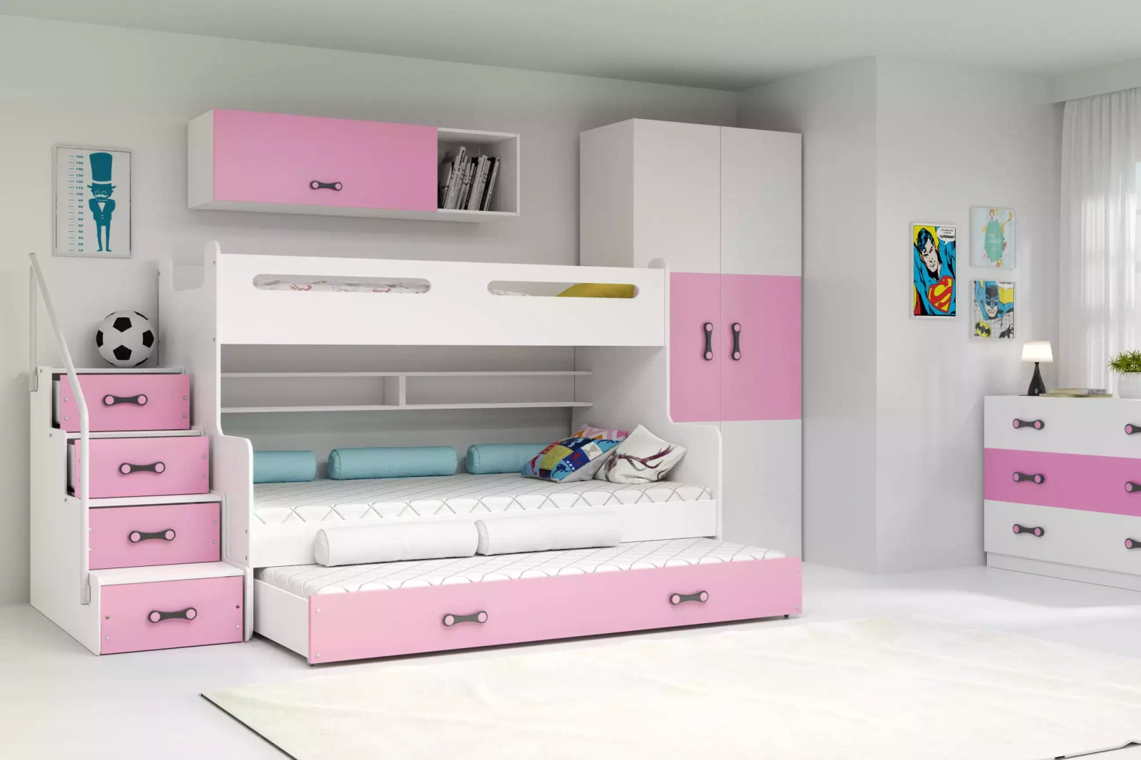 Trojlůžko pro teenagery MAX 3 120X200 se zásuvkou, růžové