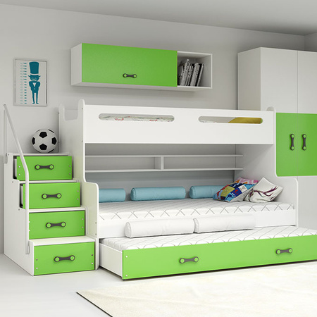 Trojlůžko pro teenagery MAX 3 120X200 se zásuvkou, zelené
