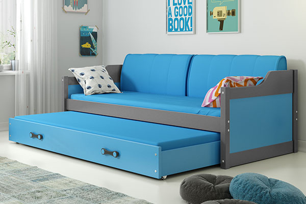 Zařizování dětského pokoje pro rostoucí dítě může být obtížné - je to chvíle, kdy je třeba se zbavit dětského nábytku a vybrat něco mnohem vkusnějšího. Úkol, který je před vámi? Je to perfektní! Rozkládací postel pro mládež Dawid 90x200 s matrací a zásuvkou, grafit/modrá je model, který se osvědčí!