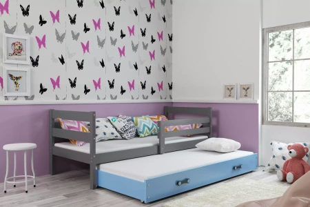 Výsuvná postel pro mládež ERYK 80X190 s matrací a zásuvkou, grafit/modrá