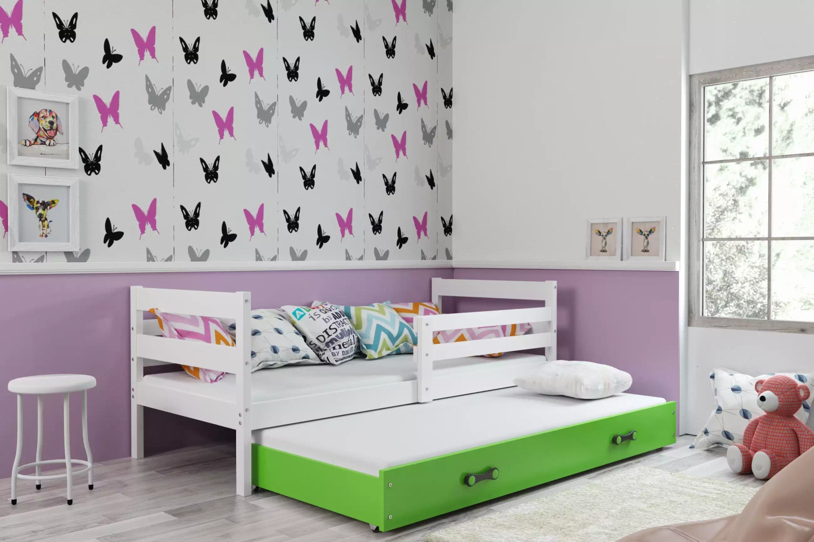 Výsuvná postel pro mládež ERYK 90X200 se zásuvkou, bílá/zelená