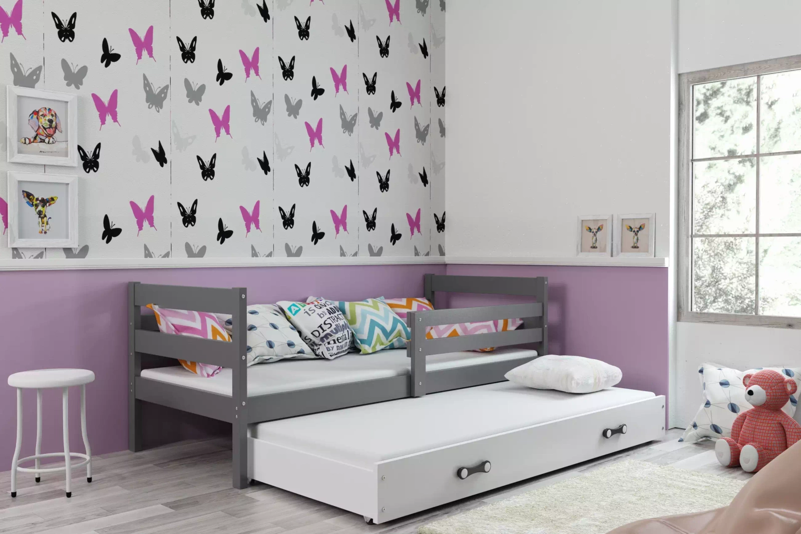 Výsuvné lůžko pro mládež ERYK 90X200 se zásuvkou, grafit/bílá