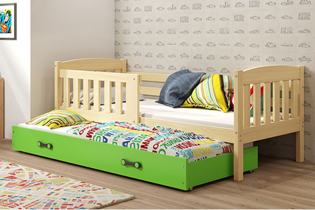 Výsuvné lůžko pro mládež KUBUŚ 90X200 se zásuvkou, borovice/zelená
